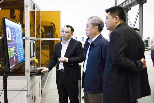 科技部黨組成員郭向遠仔細詢問嘉泰數控關節(jié)機器人、智能在線檢測以及數字化工廠的細節(jié)