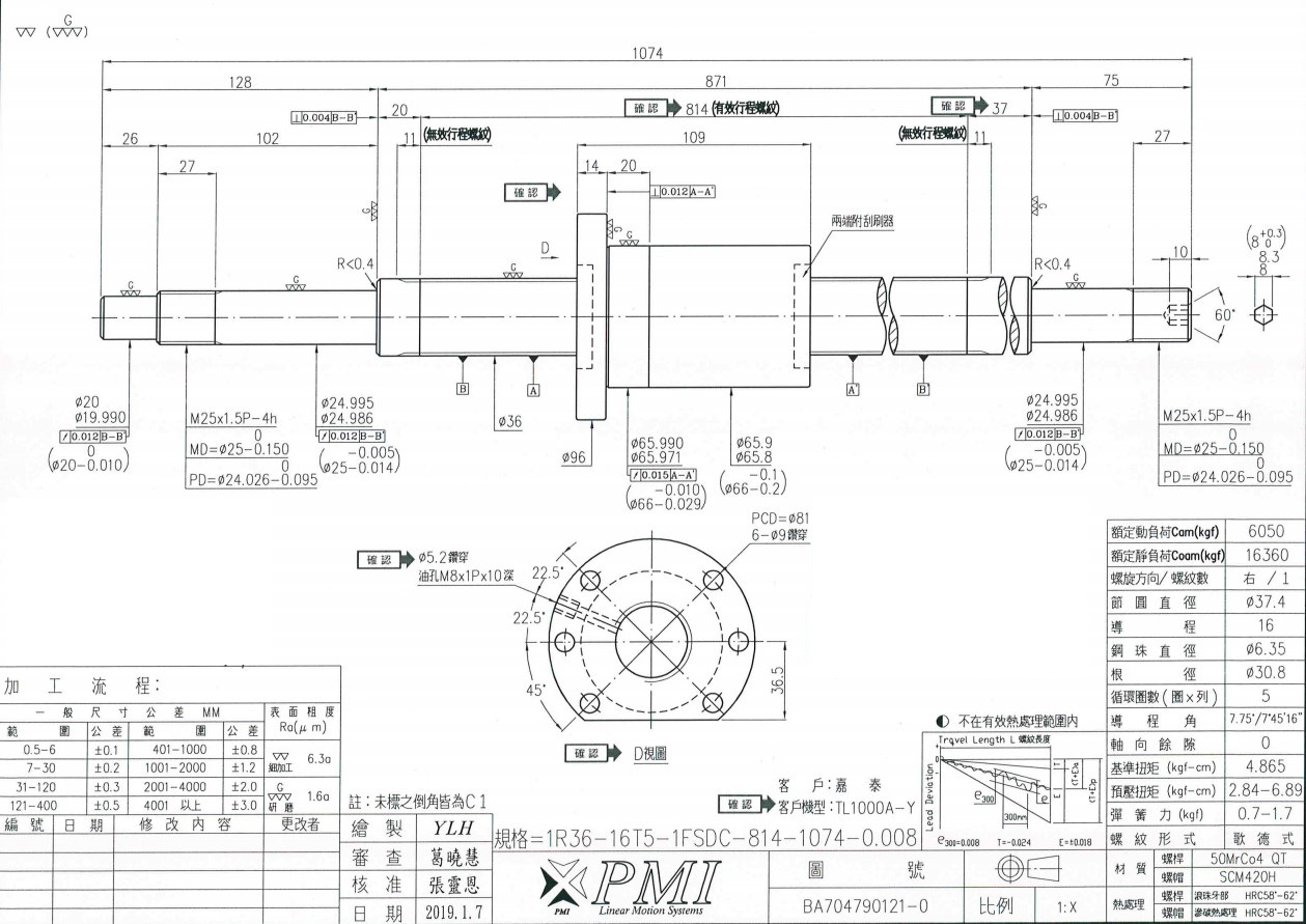 2、絲杠導程16mm、靜載荷分別達到16360kgf
